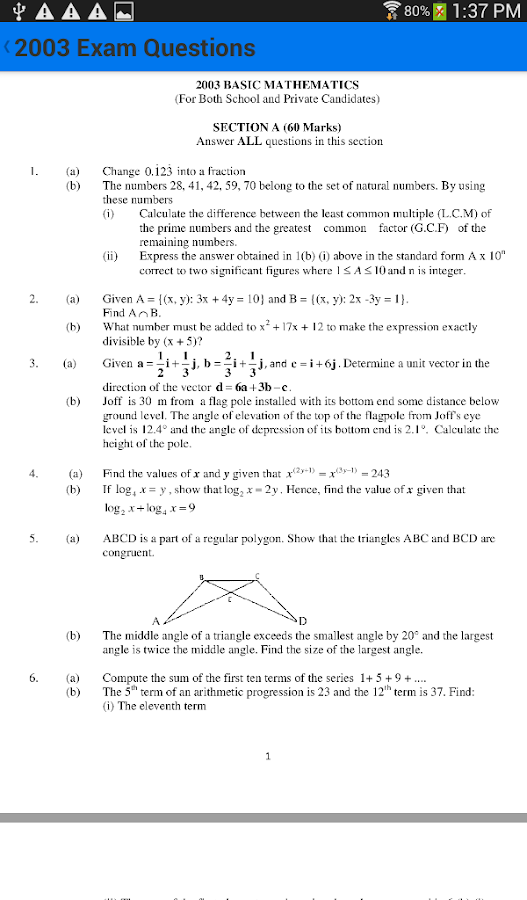 Get Form 1 Mathematics Questions Pics